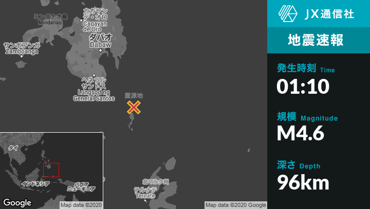 | 震源地 | フィリピンのSaranganiから東南東165kmの地点 |
