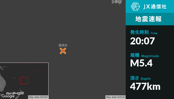 | 震源地 | ニュージーランドのRaoul Islandから北北西504kmの地点 |