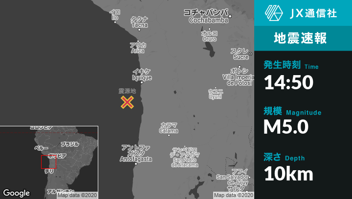 | 震源地 | チリのIquiqueから南西105kmの地点 |