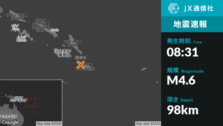| 震源地 | ソロモン諸島のKirakiraから西北西52kmの地点 |