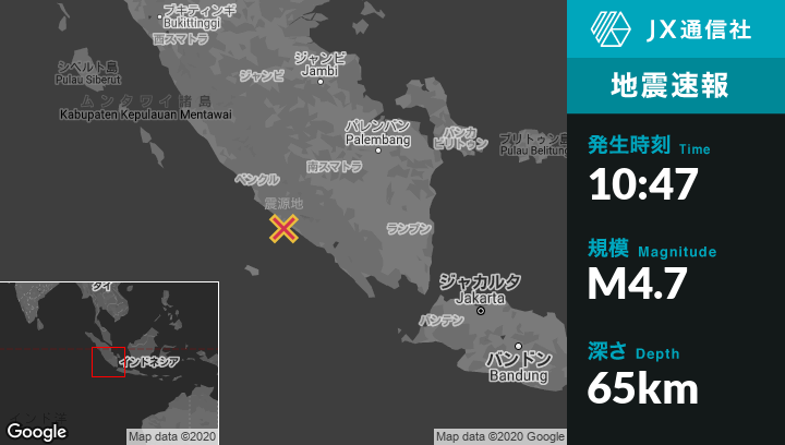 | 震源地 | インドネシアのPagaralamから南西64kmの地点 |