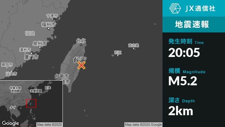 2月15日 20:05頃、台湾のHualianから南16kmの地点でM5.2の地震がありました。