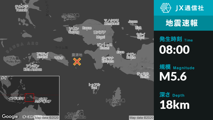 | 震源地 | インドネシアのSorongから南278kmの地点 |