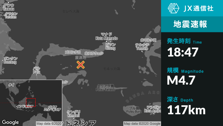 | 震源地 | インドネシアのBilungalaから南南西56kmの地点 |