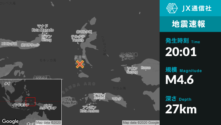 | 震源地 | インドネシアのLaiwuiから北北西81kmの地点 |