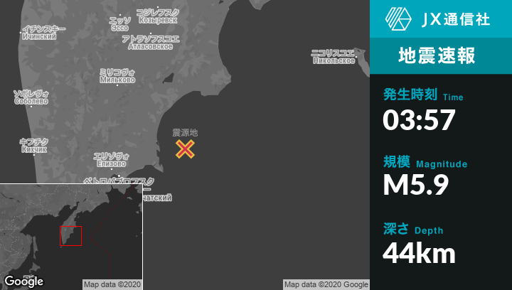 | 震源地 | ロシアのPetropavlovsk-Kamchatskiyから東北東150kmの地点 |