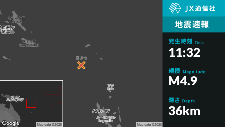 2月22日 11:32頃、ソロモン諸島のLataから南南西144kmの地点でM4.9の地震がありました。
