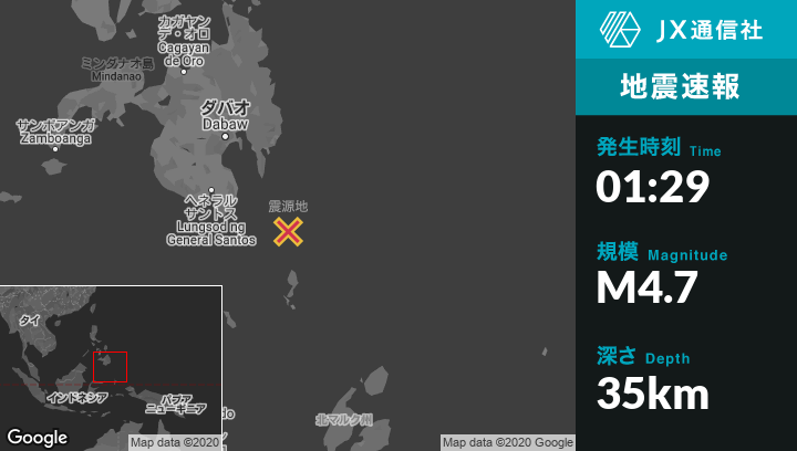 | 震源地 | フィリピンのPondaguitanから南南東118kmの地点 |