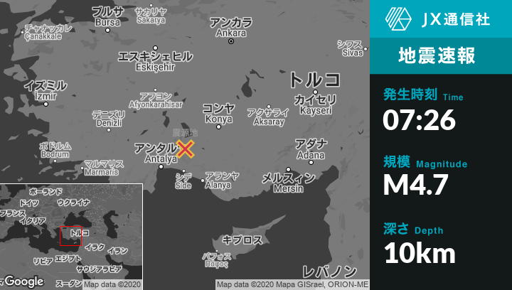 | 震源地 | トルコのDerebucakから西北西5kmの地点 |