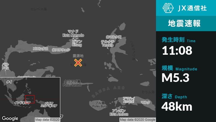 | 震源地 | インドネシアのModayagから南東135kmの地点 |