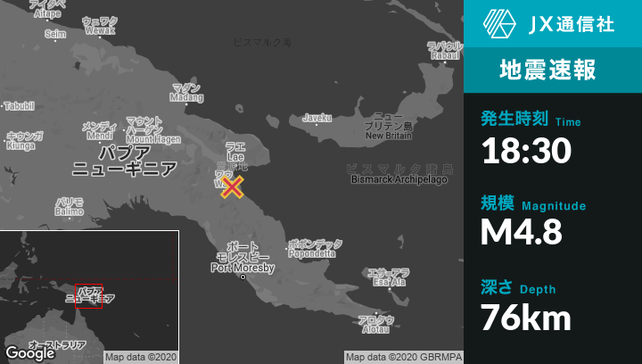 | 震源地 | パプアニューギニアのBuloloから東北東29kmの地点 |
