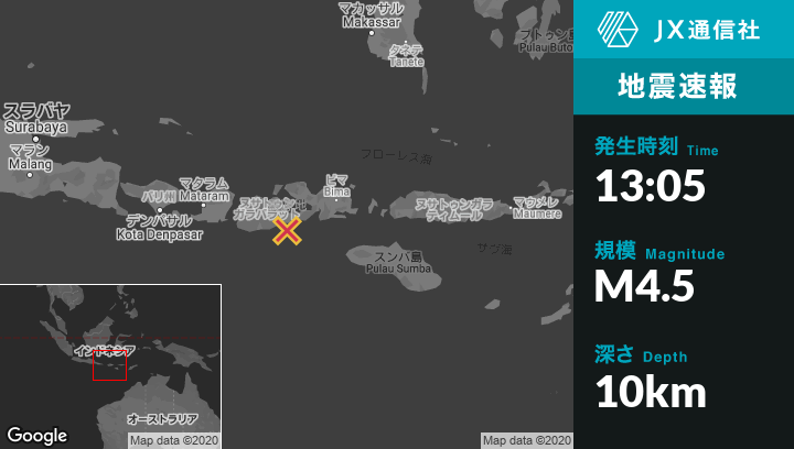 | 震源地 | インドネシアのPisangkemengから南16kmの地点 |