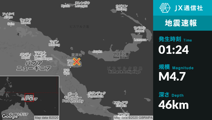 | 震源地 | パプアニューギニアのFinschhafenから北西63kmの地点 |