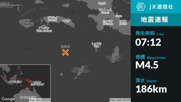 | 震源地 | インドネシアのSaumlakiから北北西268kmの地点 |
