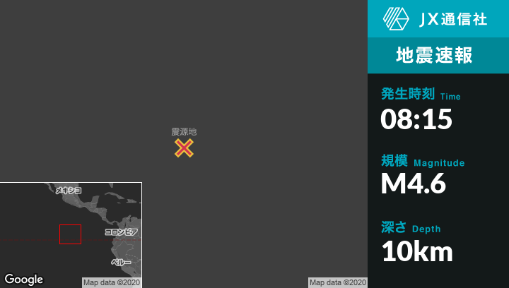 | 震源地 | エクアドルのPuerto Villamilから西北西1197kmの地点 |