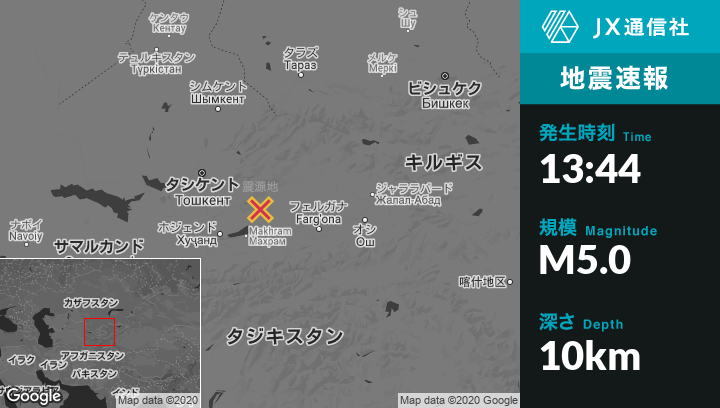 | 震源地 | タジキスタンのAshtから北東17kmの地点 |