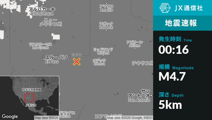| 震源地 | テキサスのMentoneから西44kmの地点 |