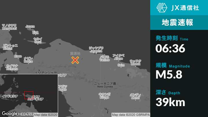 | 震源地 | インドネシアのAbepuraから西南西172kmの地点 |