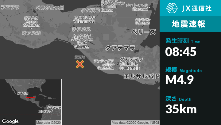 | 震源地 | メキシコのAcapetaguaから南西85kmの地点 |