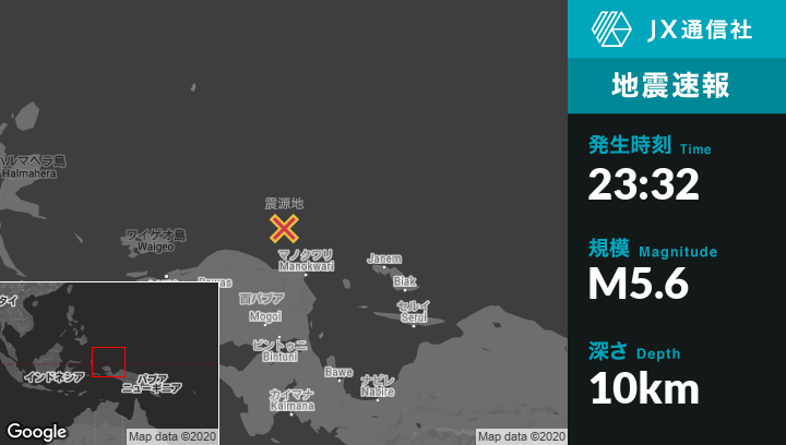| 震源地 | インドネシアのManokwariから北北西129kmの地点 |