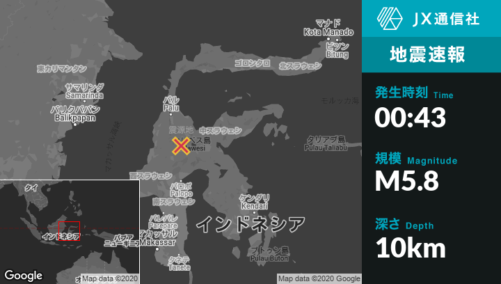 | 震源地 | インドネシアのPendoloから西北西64kmの地点 |