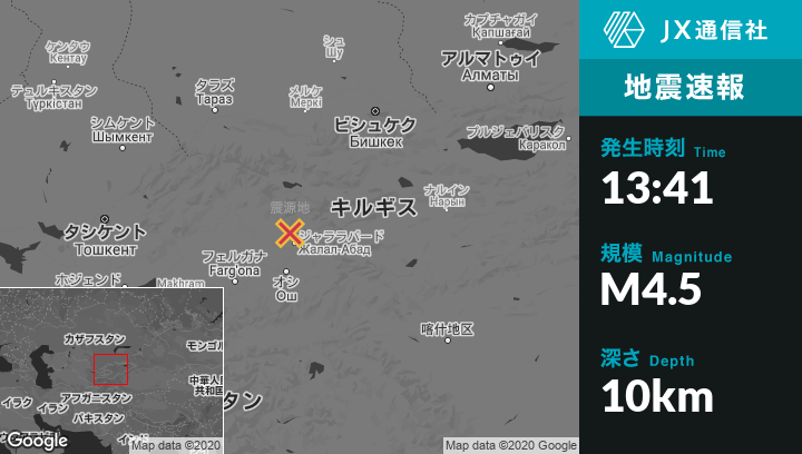 | 震源地 | キルギスタンのBazar-Korgonから北東20kmの地点 |