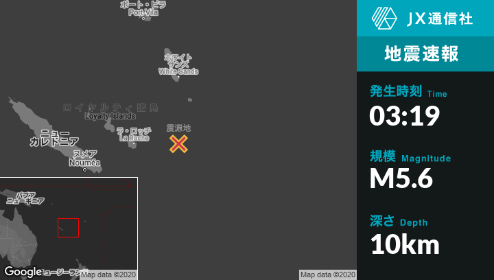 | 震源地 | ニューカレドニアのTadineから東164kmの地点 |
