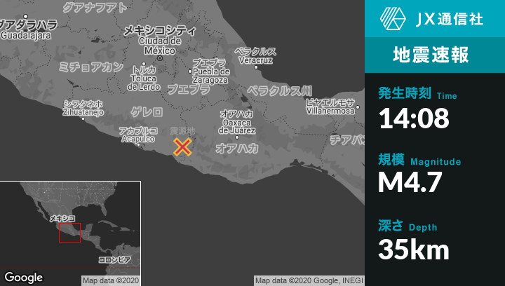 | 震源地 | メキシコのXochistlahuacaから西北西23kmの地点 |
