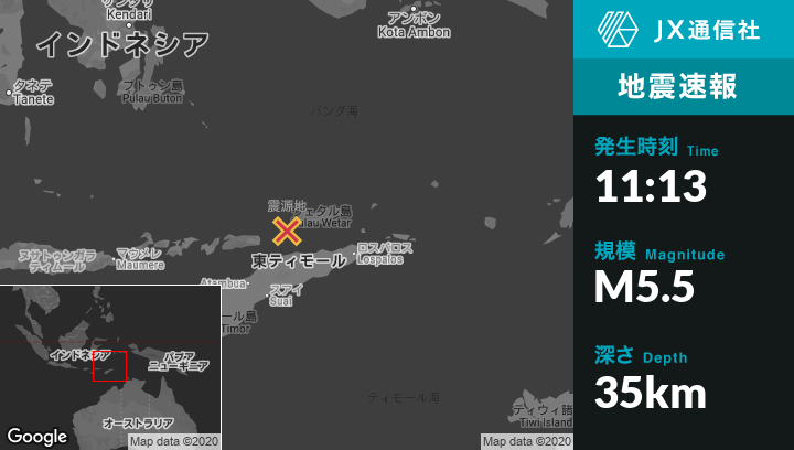 4月02日 11:13頃、東ティモールのDiliから北68kmの地点でM5.5の地震がありました。