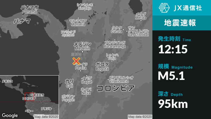 | 震源地 | コロンビアのBetaniaから南南西10kmの地点 |