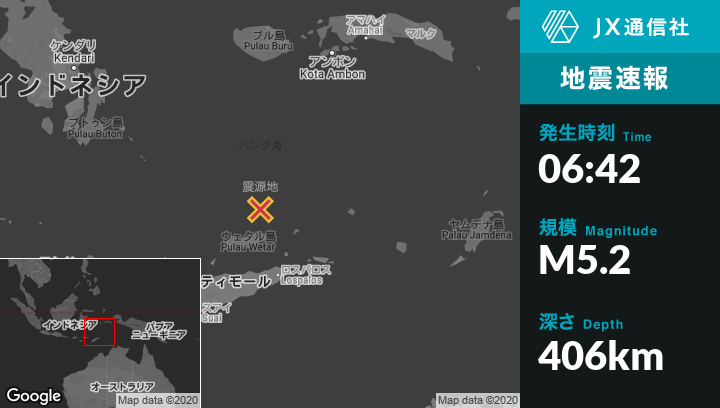 4月03日 06:42頃、東ティモールのDiliから北北東209kmの地点でM5.2の地震がありました。