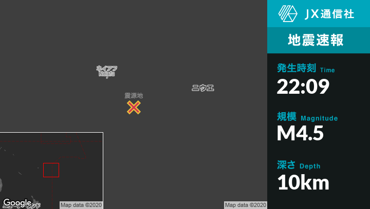 | 震源地 | トンガのPangaiから東157kmの地点 |