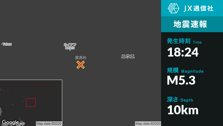 | 震源地 | トンガのPangaiから東北東121kmの地点 |