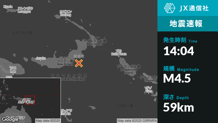 | 震源地 | パプアニューギニアのKokopoから南南西168kmの地点 |