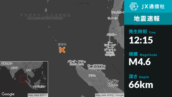 | 震源地 | インドネシアのSabangから北西206kmの地点 |