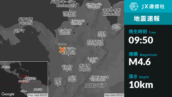 | 震源地 | コロンビアのUramitaから東1kmの地点 |