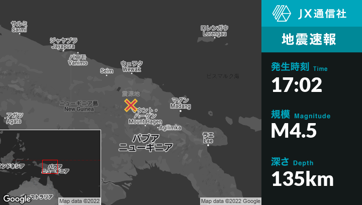 | 震源地 | パプアニューギニアのWabagから北72kmの地点 |