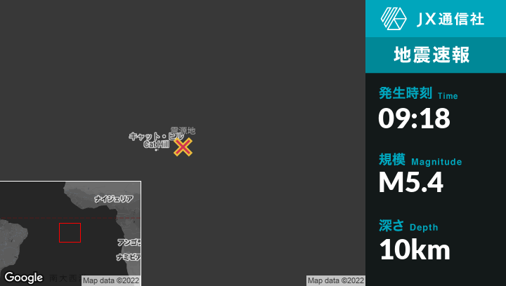 6月14日 09:18頃、セントヘレナのGeorgetownから東北東93kmの地点でM5.4の地震がありました。