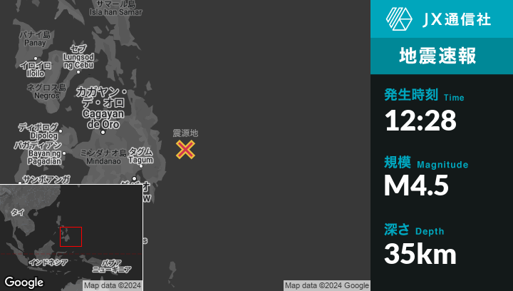 | 震源地 | フィリピンのSanta Mariaから東80kmの地点 |