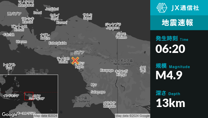| 震源地 | インドネシアのAgatsから北北西95kmの地点 |