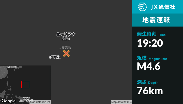 | 震源地 | グアムのYigo Villageから東北東102kmの地点 |
