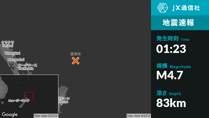 | 震源地 | ニュージーランドのHicks Bayから北北東199kmの地点 |