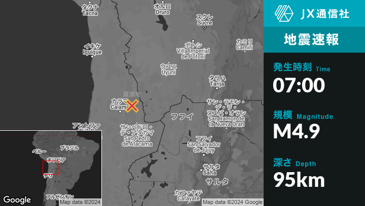 | 震源地 | チリのCalamaから北東64kmの地点 |