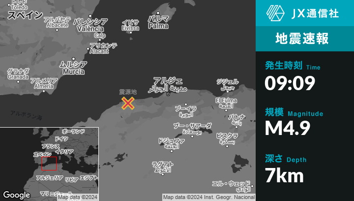 | 震源地 | アルジェリアのSidi Akkachaから北5kmの地点 |