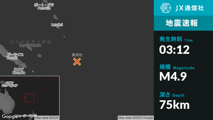 | 震源地 | バヌアツのIsangelから南南東294kmの地点 |