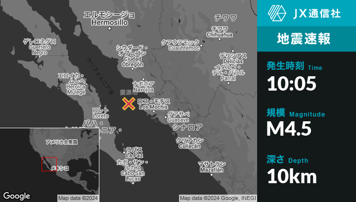 | 震源地 | メキシコのEtchoropoから南西75kmの地点 |