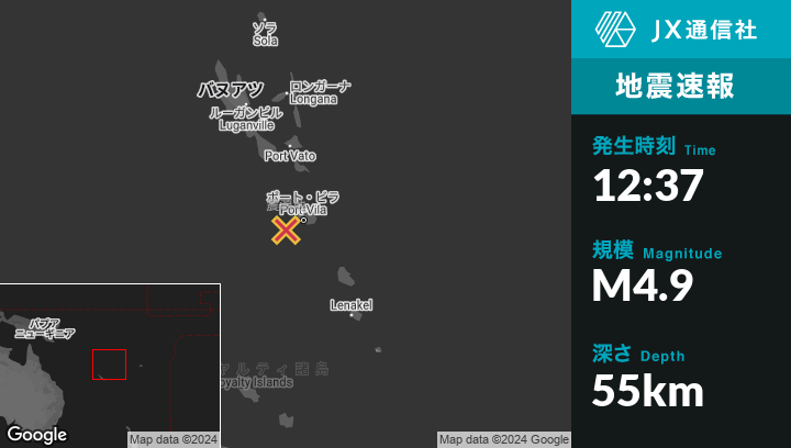 | 震源地 | バヌアツのPort-Vilaから西南西38kmの地点 |
