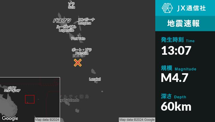 | 震源地 | バヌアツのPort-Vilaから南西49kmの地点 |