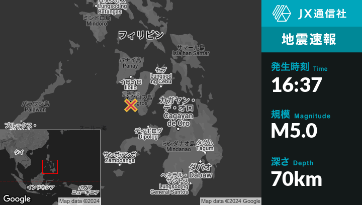 | 震源地 | フィリピンのBacuyanganから東9kmの地点 |