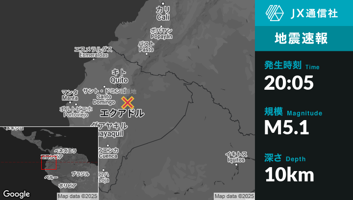 2月01日 20:05頃、エクアドルのArchidonaから西36kmの地点でM5.1の地震がありました。